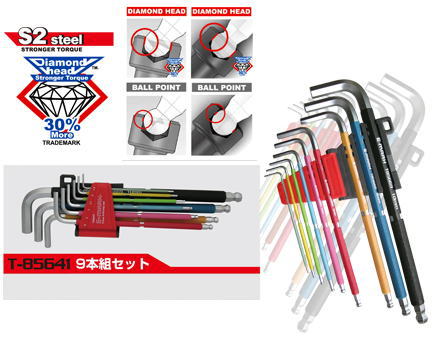 T-85641E-MARK ダイヤモンドヘッドボールポイント六角棒レンチ9本組セット 価格: 2,457円 レビュー評価: 0.0 レビュー数:0 ●収納・携帯に便利な開閉式ホルダー付●耐久性、耐摩耗性に優れた「高トルク S2steel」を採用 ●「Diamond Head」により、ねじり強度が約30%アップ。斜め作業時にも強度な締付け作業ができます●サイズを色で識別できる「ANTI-SLIP」カラーグリップ ●強度な締付け作業ができる「EXTRA LONG」タイプ●先端部マグネット付 ●セット内容 : 1.5、2.0、2.5、3.0、4.0、5.0、6.0、8.0、10.0mm●収納・携帯に便利な開閉式ホルダー付●耐久性、耐摩耗性に優れた「高トルク S2steel」を採用 ●「Diamond Head」により、ねじり強度が約30%アップ Supported by 楽天ウェブサービス |